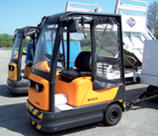 Transpalettes à conducteur porté et préparateurs de commandes au sol.